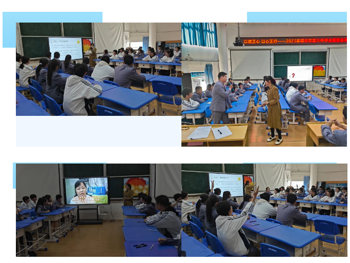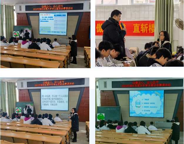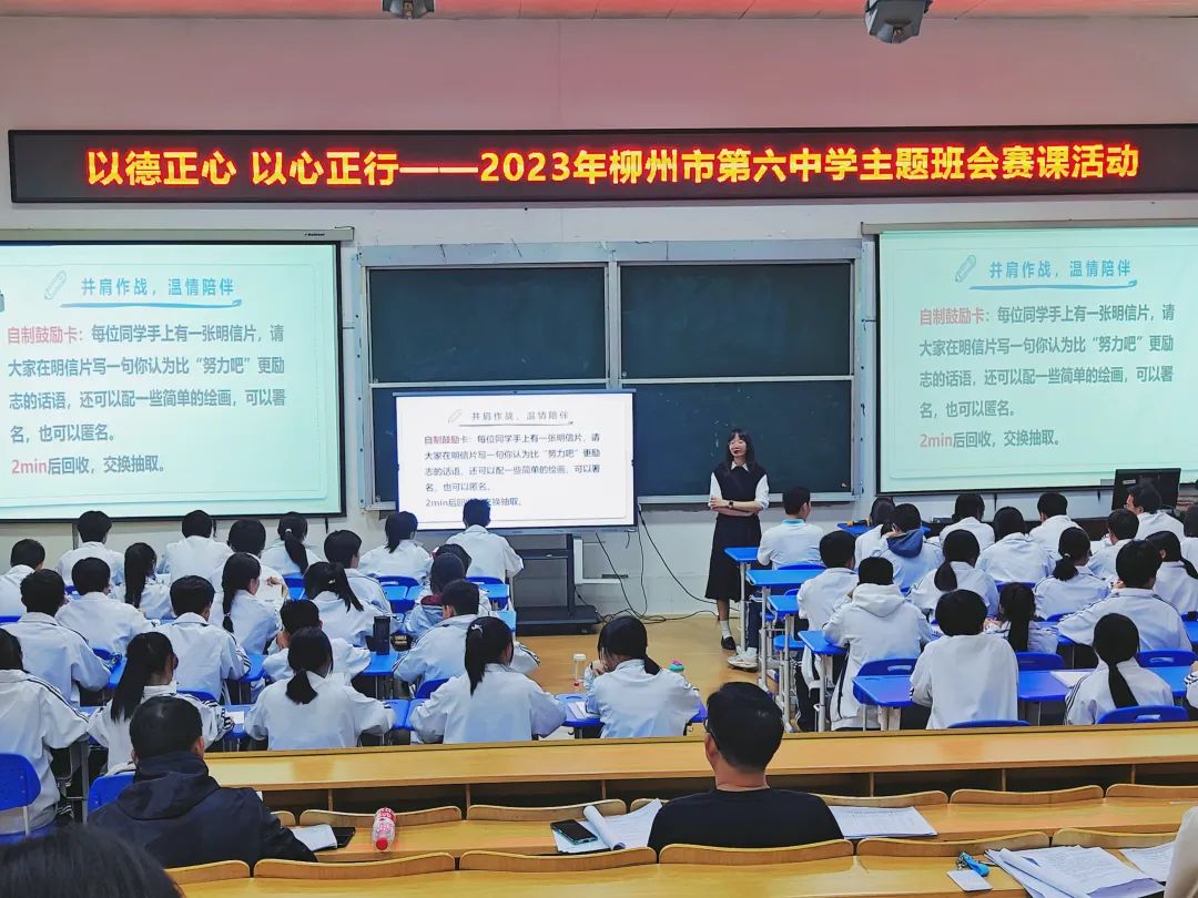 为全面贯彻落实立德树人根本任务,展示新时代班主任队伍的综合素质、专业水平和育人能力,进一步提高班主任教育教学水平,柳州市第六中学举行了班主任专业技能提升系列活动。2023年11月20日至12月4日,经过年级推荐,十位班主任进行了主题班会比赛的激烈角逐,最终评选出一等奖四名,二等奖六名。让我们来看看班主任们的风采吧!