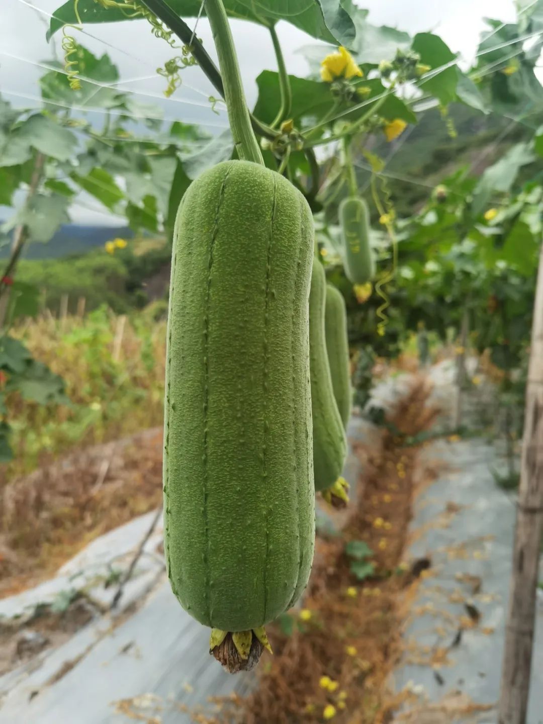 早熟丰产丝瓜品种,植株生长旺盛,分枝能力强,叶掌状浅裂。主、侧蔓结瓜,第一雌花着生于第7-9节,连续座果能力强。瓜呈短筒状,瓜长18-22cm,瓜径5.5-6.5cm,平均单瓜重400-600g。瓜皮绿色、粗糙,肉质质地紧实,不易裂果;果肉甘甜,不易褐变。从开花到商品瓜采收约10-15天。