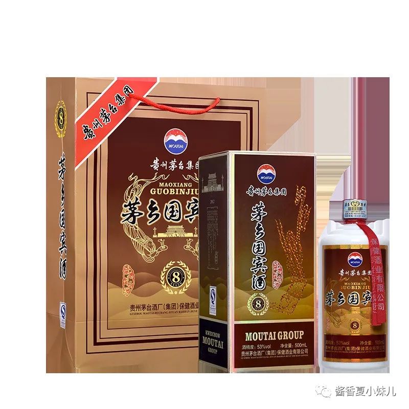 贵宾(8)一款酒是茅乡国宾酒茅台酒系列产品。茅乡国宾酒是以优质高粱、小麦为原料,秉承茅台酒传统工艺、精心酿造、勾兑而成的优质酱香型白酒。茅乡国宾酒具有酱香明显、幽雅舒适、协调醇和、回味较长、空杯留香,饮后不上头的特点