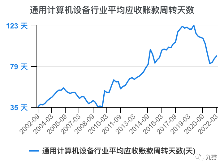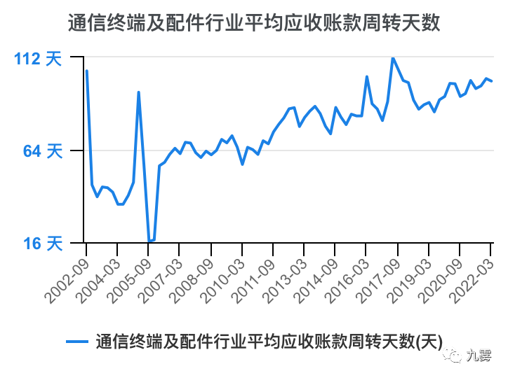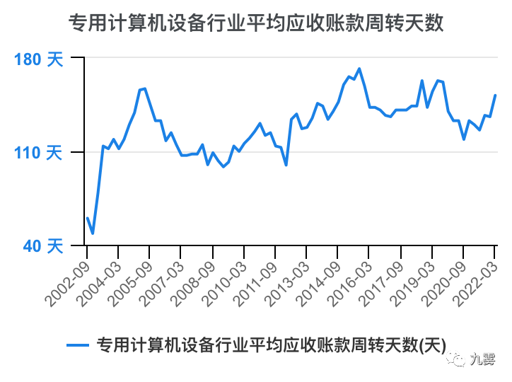 行业应收账款周转天数对比之三:电力设备及新能源、电子、石油石化、计算机、轻工制造、通信、钢铁、食品饮料