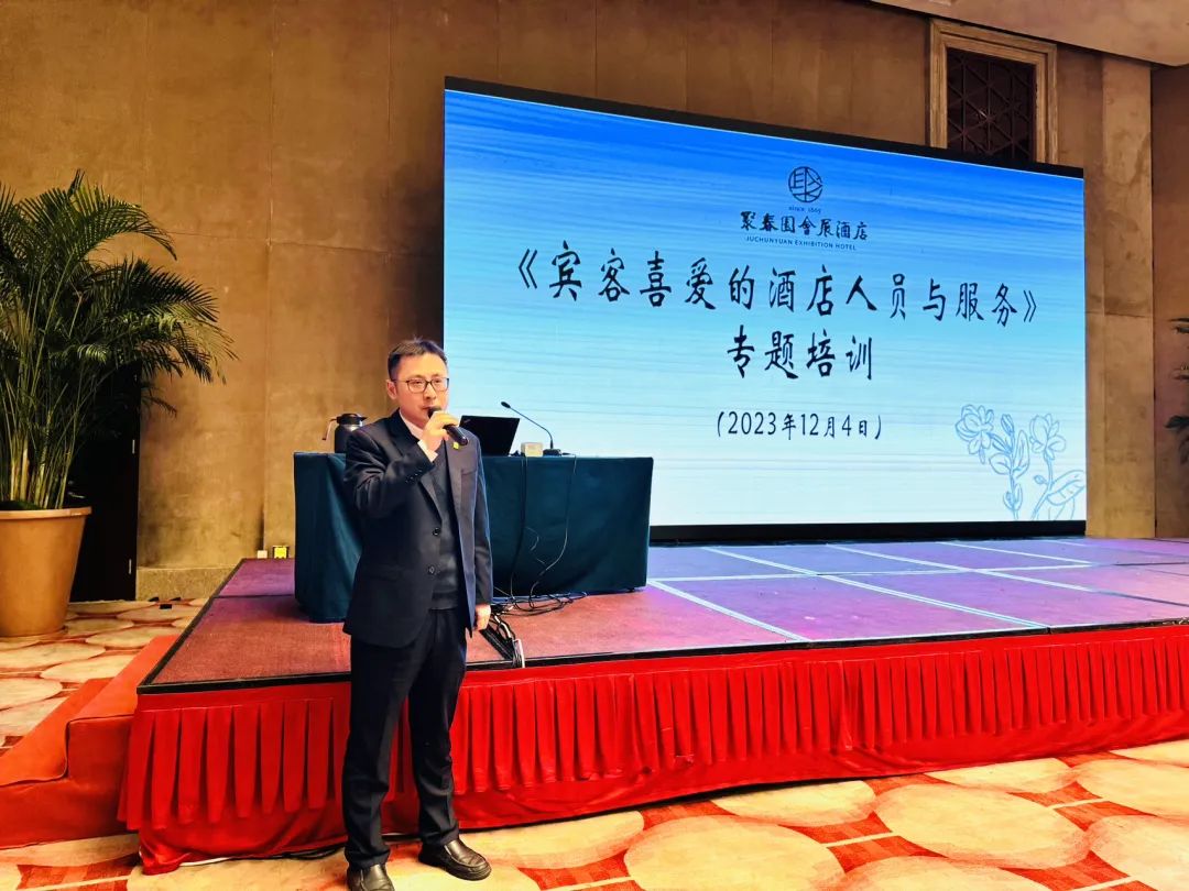 为提升顾客满意度,增强顾客在店消费体验感,根据聚春园集团党委“十四五”战略规划和“管理效益年”工作部署。12月4日上午,酒店特邀福建省星级饭店星评员、福州市旅游协会秘书长、酒店管理专业高级讲师金文龙到店开展《宾客喜爱的酒店人员与服务》专题培训,以此提高基层一线人员服务意识,有效改善服务实操技能和沟通能力。