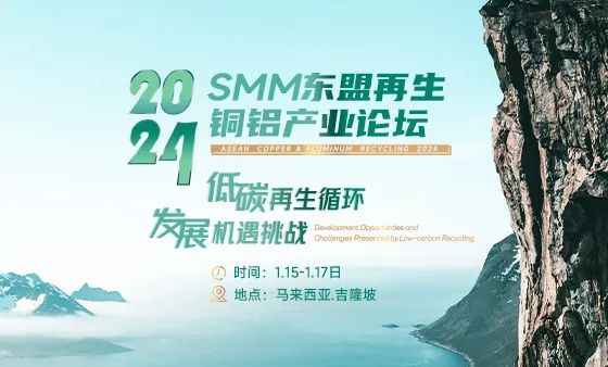 东南亚作为全球再生铝原料重要的中转和加工基地,时刻牵动着国内企业的神经。为加强国际间交流合作及应对未来产业变化,SMM计划于2024年1月15日,在东南亚循环经济代表性国家之一的马来西亚召开SMM (首届)马来西亚国际再生金属大会,届时将以国际化视角探讨行业现状及展望未来发展趋势,促进中国与东南亚企业在再生产业的合作交流。在此,SMM诚邀全球再生金属产业同仁,相聚马来西亚,参与2024 SMM东盟再生铜铝产业论坛。