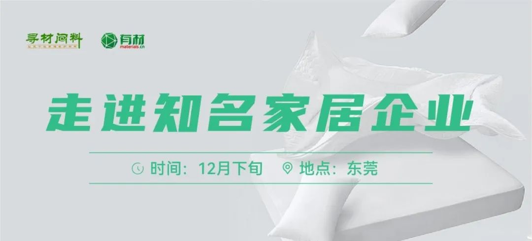 本月,寻材问料®走进终端接收到来自知名家居企业提交的10+条创新材料/工艺需求,目前正在征集能够提供优质解决方案的供应商中。我们将携手优质供应商前往知名家居企业,举办走进终端·知名家居企业专场技术交流会。走进终端活动行程包括:主题分享、解决方案展示、合作交流、晚宴等。