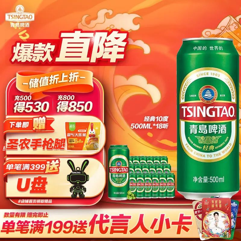 青岛啤酒的经典10度酒精度,为啤酒增添了适度的浓郁口感,是消费者钟爱的特色之一。