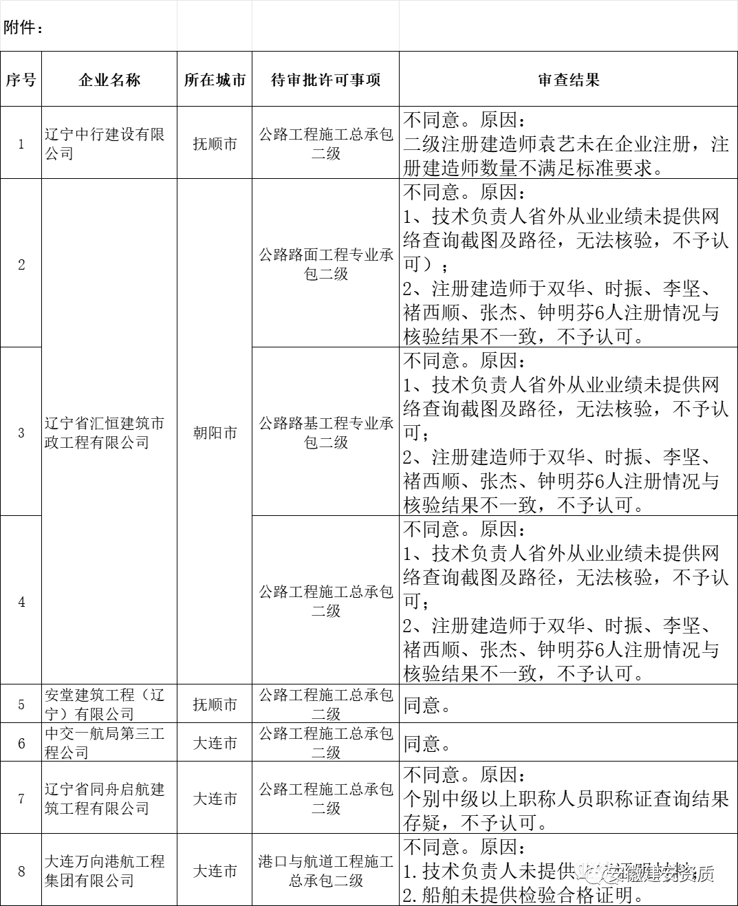 关于建筑业(公路方面)企业资质审查意见公示