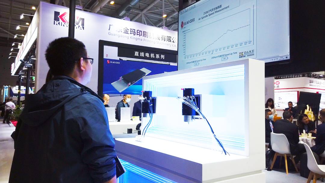 展会首日,昊志机电(7号馆 7E01)携20万转钻孔主轴、25万转钻孔主轴、32万转极小径钻孔主轴、气浮超精密晶圆研磨电主轴及大推力直线电机等产品如约亮相深圳电子电路展。展会现场持续吸引众多观众参观、洽谈,我司工作人员给予热情接待与专业讲解。