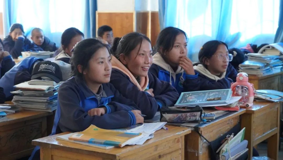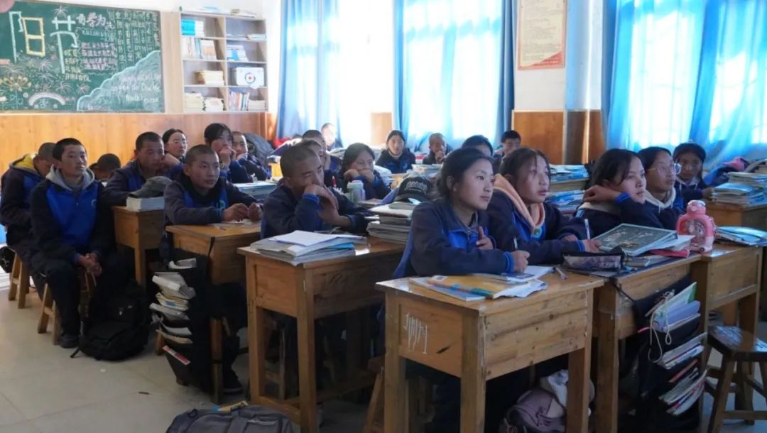 来自玉树三民中学等支教点的学生们在第二十五届研支团老师的组织下集体观看了录制视频,笑声连连,收获满满。
