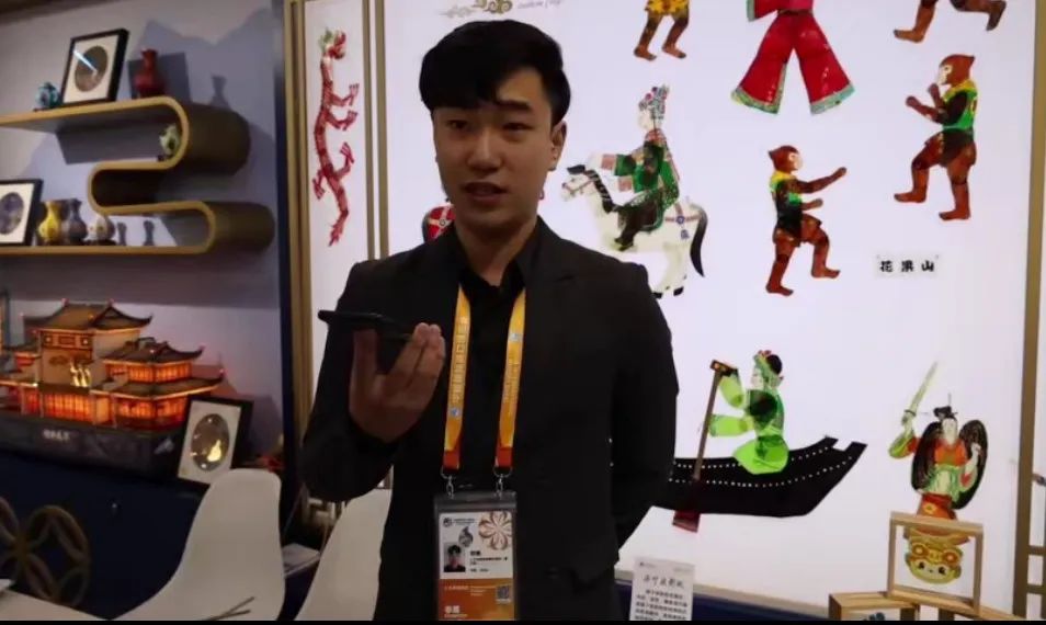 这一站,学生们跟随研支团成员的步伐来到了非遗馆,体悟中国传统文化的魅力。中国非物质文化遗产是中华优秀传统文化的重要组成部分,也是中华文明绵延传承的生动见证,是连结民族情感、维系国家统一的重要基础。在非遗展馆中,河南非遗企业弘宝汝瓷的展台展示着仿古和创新兼具的汝瓷作品;广东馆展示着中式挂裙的细节,一针一线间都是中式审美情趣;起源于南宋时期的海宁皮影戏已经有一千多年的历史,镜头前,展台的工作人员将这段历史娓娓道来,带领镜头后的学生们走入那段皮影戏的南北变迁史。