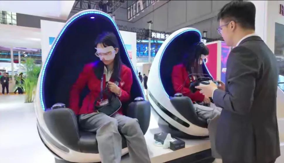 第二十六届研支团成员王楚、徐佳卿则带领学生们走进高新技术成列的技术装备展。和典雅的非遗区不同,技术装备展的产品展示着科技的活力。在这里,学生们跟随成员体验各类有趣的高科技设备,看创新科技如何颠覆人们想象,带来无限可能。