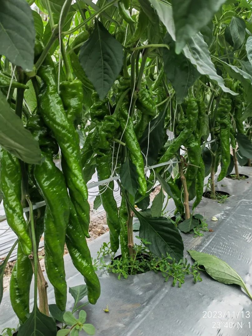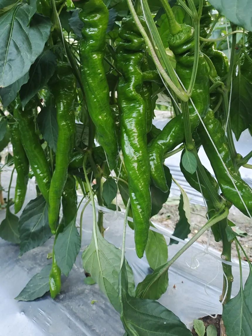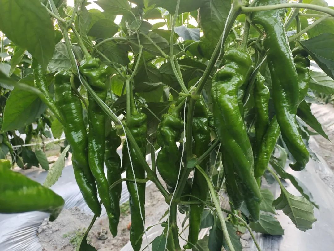 杂交一代中大果型螺丝椒,早熟。耐低温,连续坐果强,彭果速度快产量高。果实顺直,螺旋好,果色深绿色有光泽,果长28cm左右,香辣味浓,口感好。