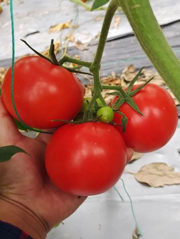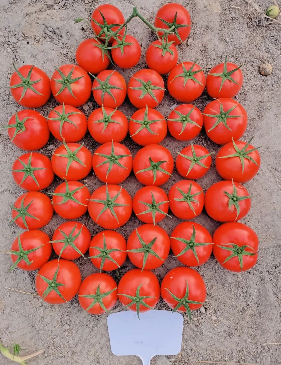 杂交一代大红番茄,长势旺盛,抗TY病毒、抗灰叶斑。单果重约230克,果色深红有光泽,萼片平展美观,果实高圆形,精品果。