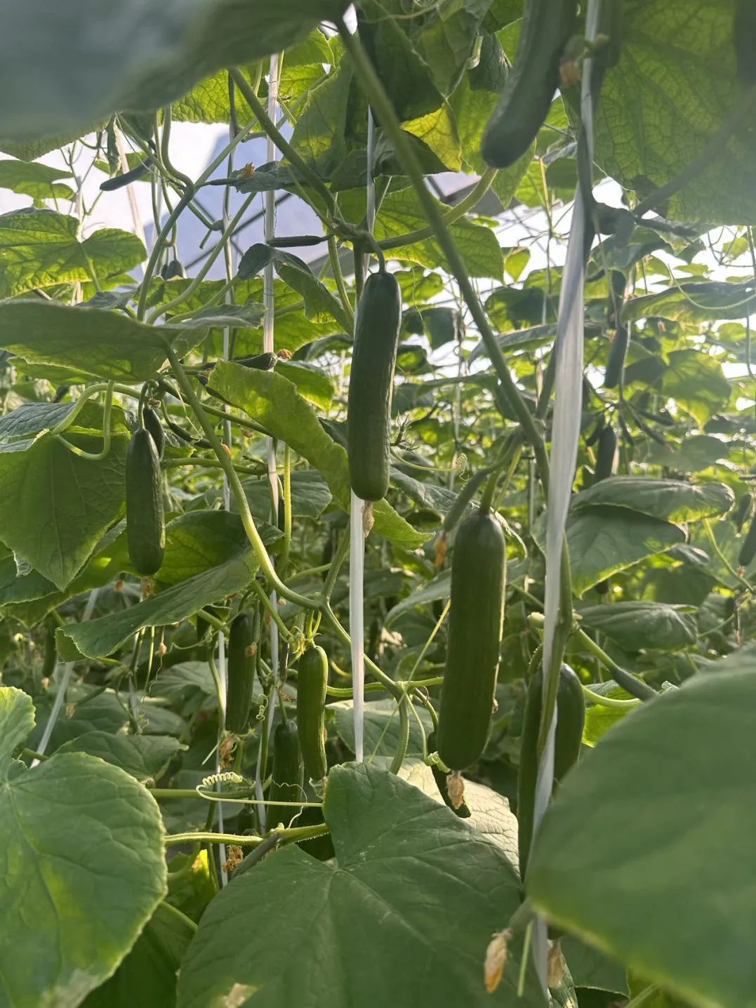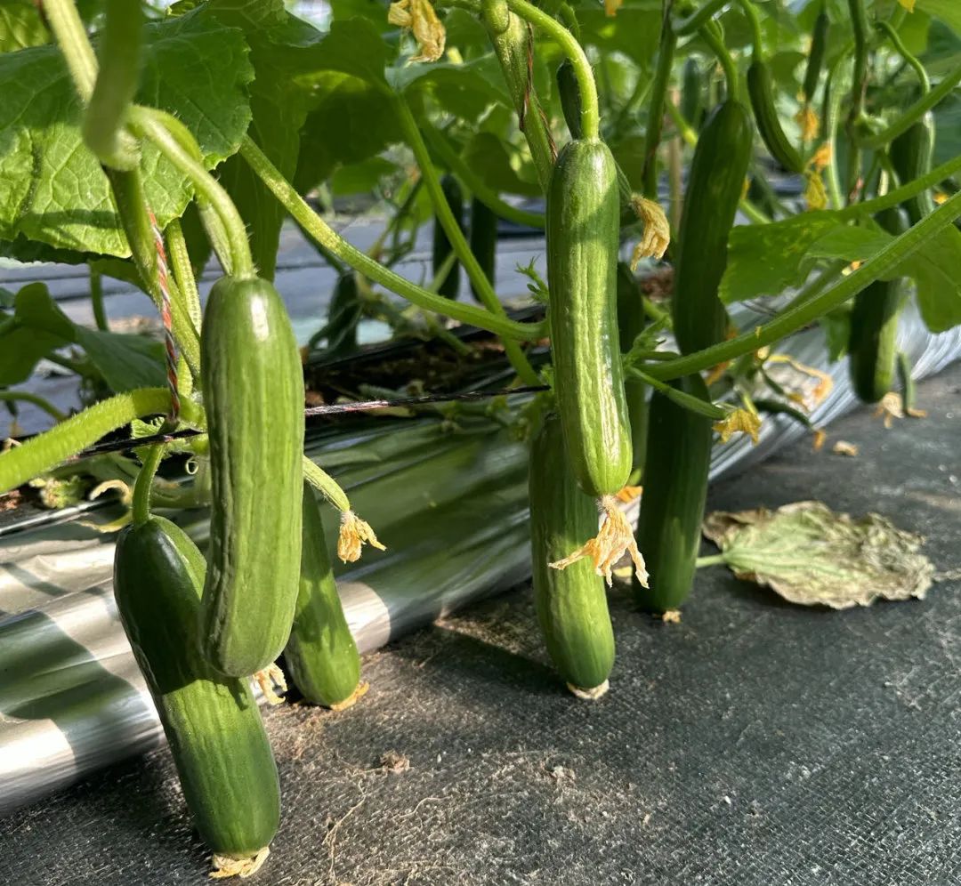 全雌型无刺小黄瓜,植株长势强,节间中等,茎杆粗壮,耐热抗病性强。连续座果强,产量高。瓜条翠绿、顺直、均匀、有光泽,瓜长16-18CM,口感脆爽,微甘甜。