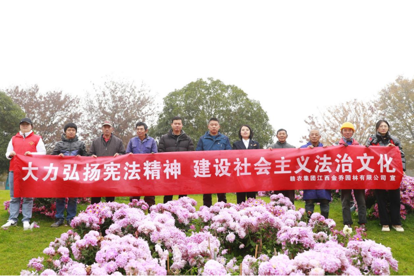 12月1日至6日,赣农集团金乔园林公司开展以“大力弘扬宪法精神,建设社会主义法治文化”为主题的宪法宣传周普法宣传活动,推动宪法进项目、进起运、进生产等下基层系列活动,将法律知识带到干部员工身边,在公司上下形成尊崇宪法、学习宪法、遵守宪法、维护宪法、运用宪法的良好风尚。
