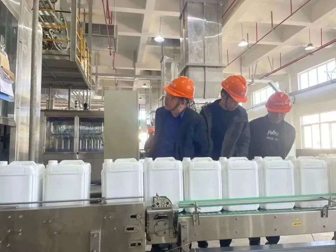 考察组首先参观了工厂现代农药全自动化生产流水线,详细了解了农药的生产过程、管理模式、质量控制流程等情况,明白了自己买卖的产品是怎么生产出来的,对产品品质更加放心。