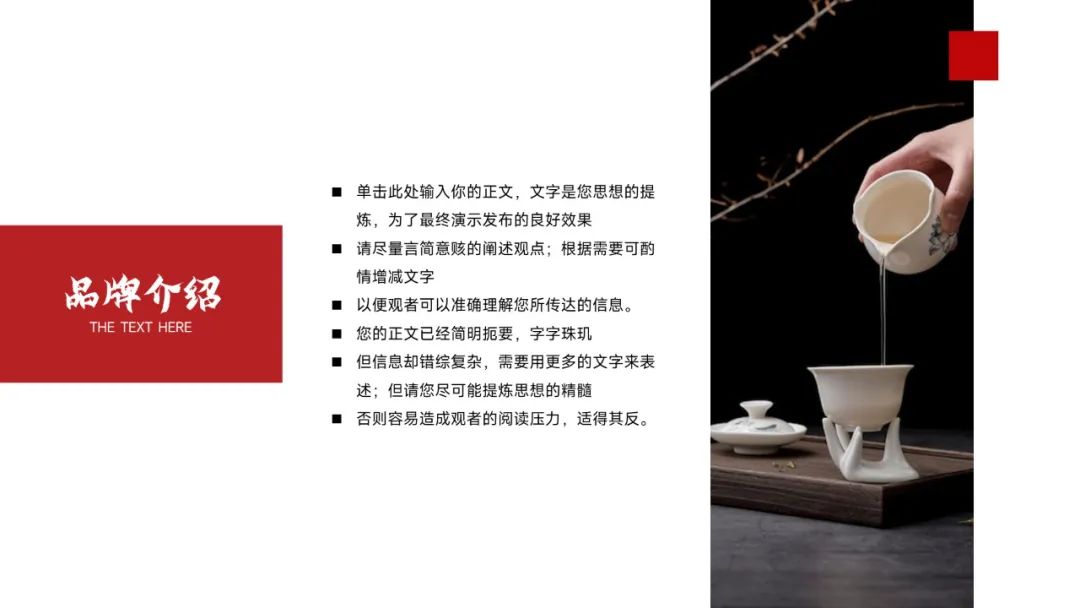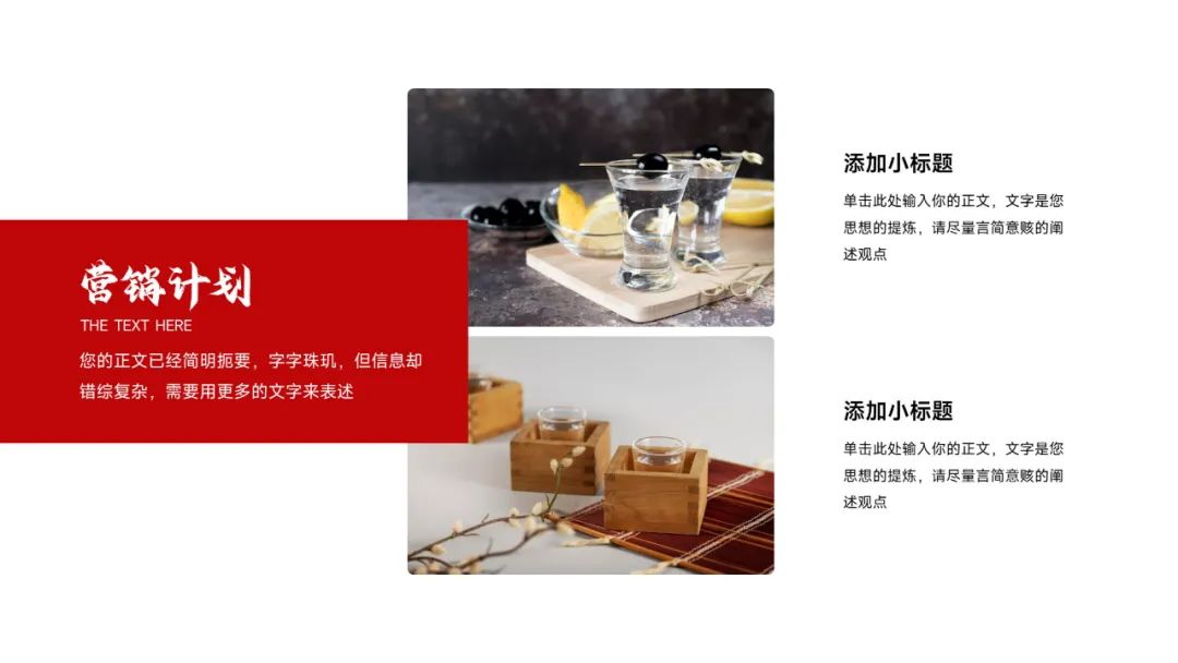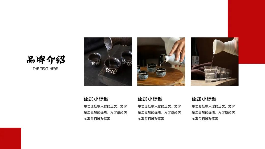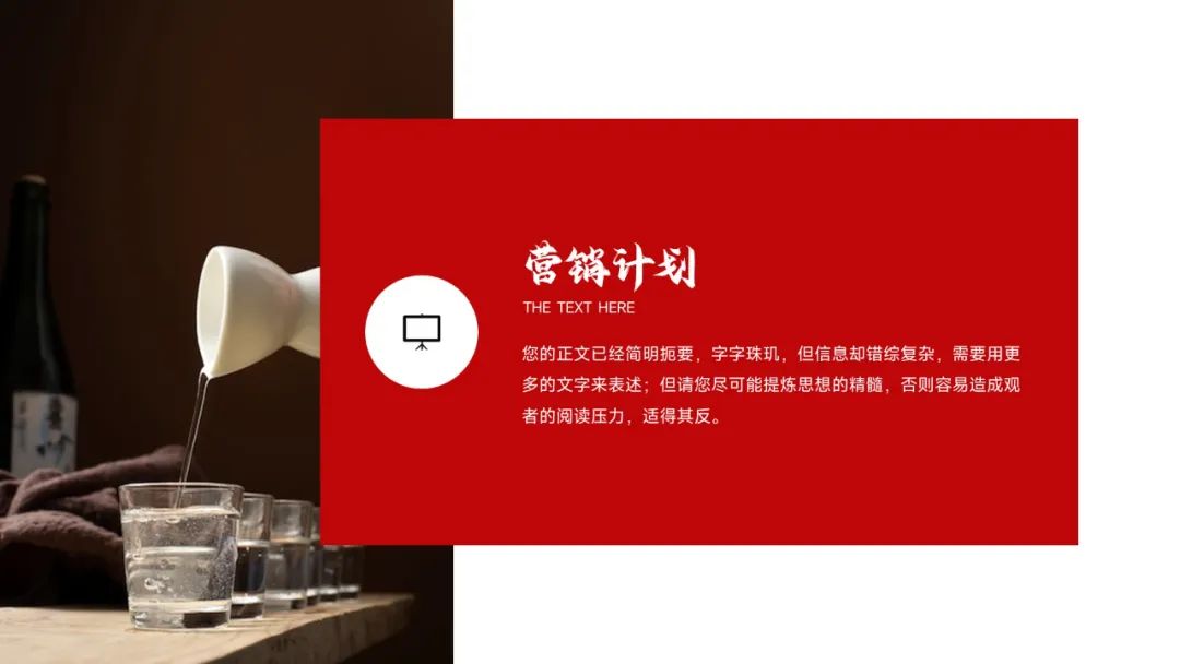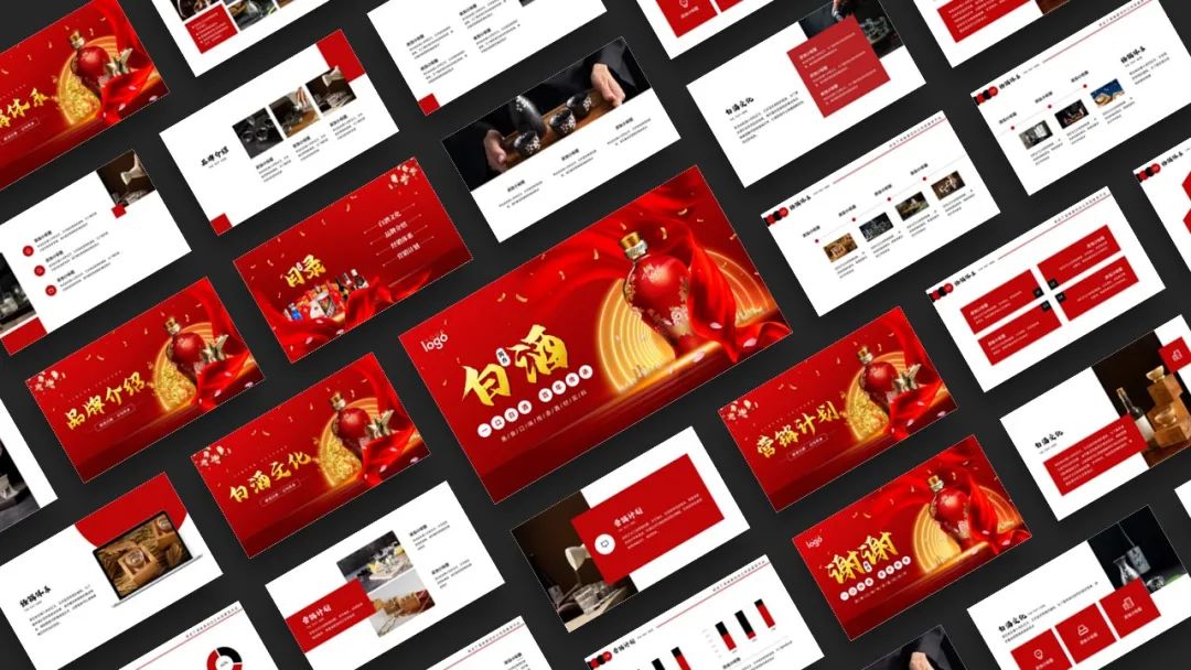 今天这套是烟酒茶系列中的白酒主题,设计的出发点就是要符合大家对白酒设计的普遍印象,所以采用了喜庆红配色,再以产品展示为主,搭配红绸缎、背景光效,塑造出白酒产品的大气美观,凸显白酒文化的高端内涵,整套版式还是挺不错的,具体内容大家看预览图哈~TIP:免费领取见文末!