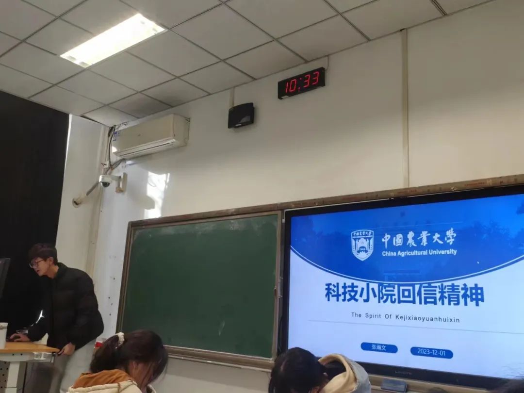 张瀚文同学围绕习近平同志给科技小院回信一事展开论述,幽默有趣的讲解和乐趣横生的课件,让我们在欢声笑语中理解到了农业兴国的重要性,体会到了习主席对中农学子的热切期望。