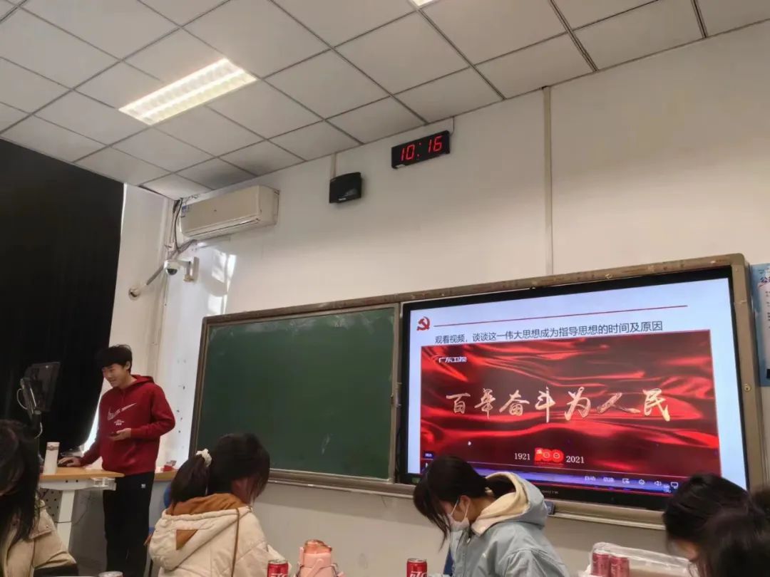 首先,柳彦初同学对于习近平新时代中国特色社会主义思想及其相关内容进行了讲解并发表了自己的看法,认为人民才是国家的主人,中国共产党带领中国人民进行的百年奋斗就是为了给人民谋福祉。