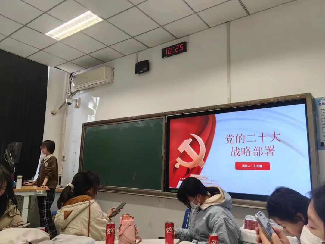 随后,孔艺睿同学围绕党的二十大的战略部署进行了详细的讲解,向我们介绍了二十大精神的内涵,让我们对二十大的核心内容和思想内涵有了更加深入的认识。