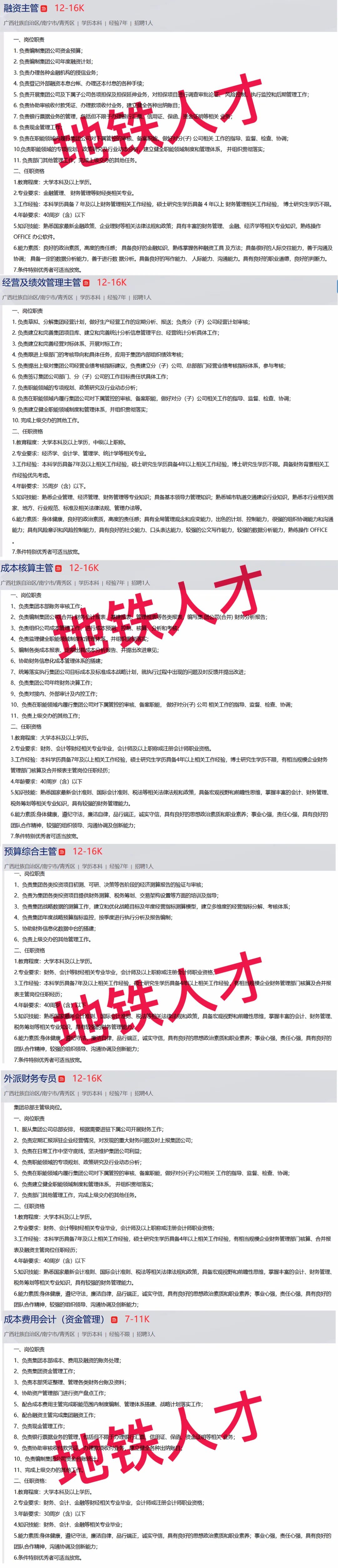 (二)具体岗位职责及任职资格请登录“广西人才网”或“智联招聘”搜索“南宁轨道交通集团有限责任公司”查询。