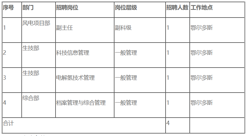 为满足鄂尔多斯市蒙电投能源有限公司(以下简称“鄂尔多斯筹建处”)工作需要,经研究决定,面向社会招聘有关专业人员,现将有关事宜公告如下: