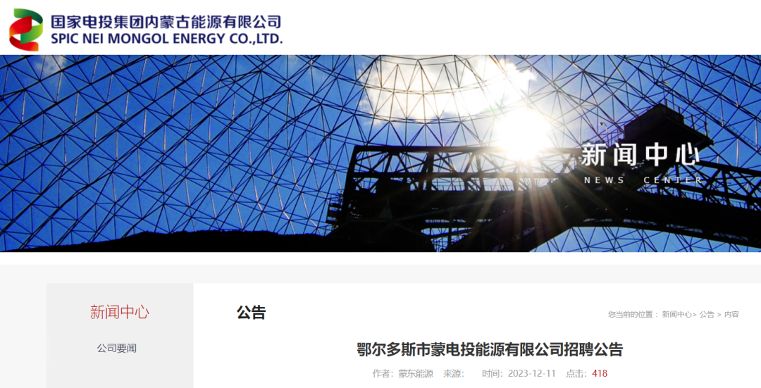 鄂尔多斯市蒙电投能源有限公司招聘公告