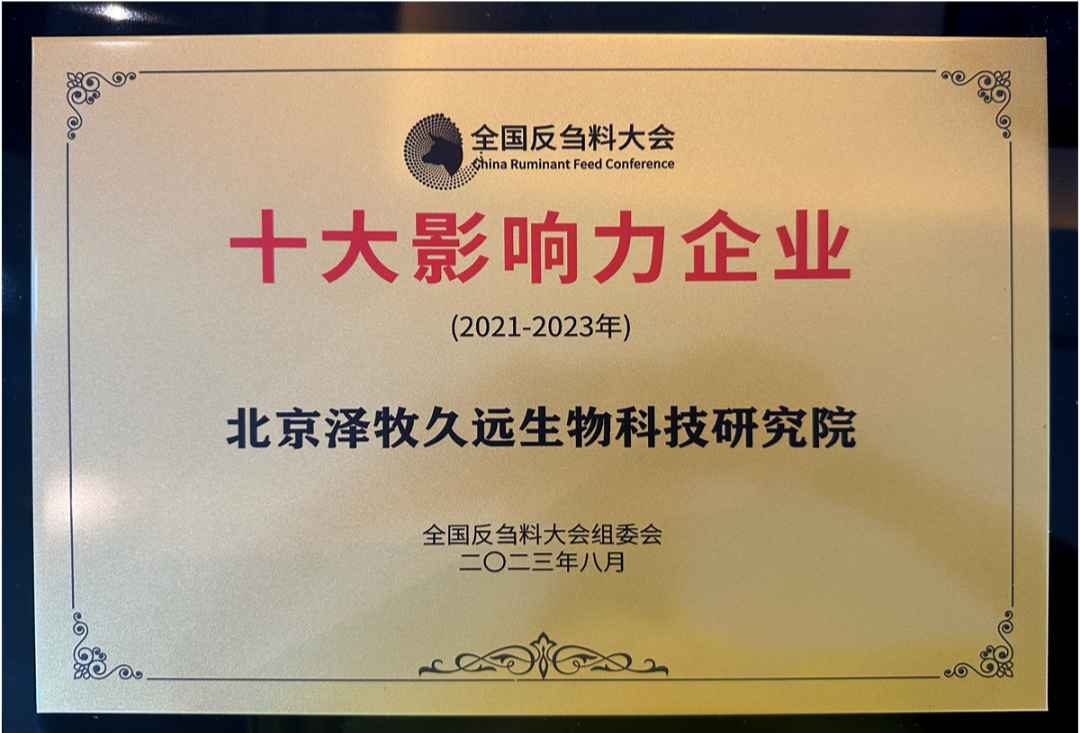 泽牧久远荣获全国反刍料大会“十大影响力企业”