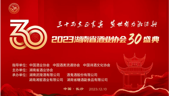 《酒业财经》:楚湘文明之地,山水奇秀,五谷丰茂,独特的地理环境与温和湿润的气候,给湖南酿造美酒提供了物质基础。而因为有酒,湘西人激昂粗犷的形象跃然纸上,因为有酒,湘西的风土、人情、民俗生动隽永。当然我们不单单可以从沈从文的《边城》里去寻找湘酒的基因,在中国白酒地图上,湘酒本就占领一席之地。以振兴湘酒为使命,湖南省酒业协会自1993年成立以来,至今已走过了30年的发展历程。我们可以看到,过去的三十年,面对国内外百年之变局,湖南省酒业协会始终坚持稳健发展、务实创新的工作方针,充分发扬湘酒酿造的匠心精神,倡导流通行业诚信经营的品质保障,进一步彰显了湖南酒业健康持续、行稳致远的发展态势。在此次湖南省酒业协会成立30周年庆典上,以湘酒快速发展为目标,以促进流通行业繁荣昌盛为目的,湖南省酒业协会给湖南省酒类市场过往三十年做出了什么样的总结?又对湘酒未来的发展之路给出了什么样的展望?下面不妨让我们一起来看看吧……30年风雨兼程,30年春华秋实。12月10日,值湖南省酒业协会成立30周年盛典举办之际,2023湖南省酒业协会五届四次理事(扩大)会议在长沙如期召开。中国酒业协会、中国酒业流通行业协会,部分省(市、区)酒类行业协会的代表,湖南省酒企酒商、酒行业人士上千人出席了庆典活动。三十而立