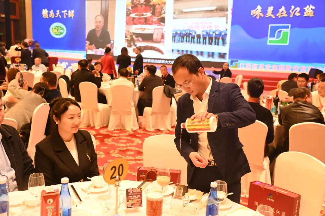 晚宴上,现场赣酒、赣菜、赣盐强强亮相,赣酒成为此次活动晚宴的指定用酒。口感醇香柔棉的赣酒得到众多的餐饮行业大咖称赞。