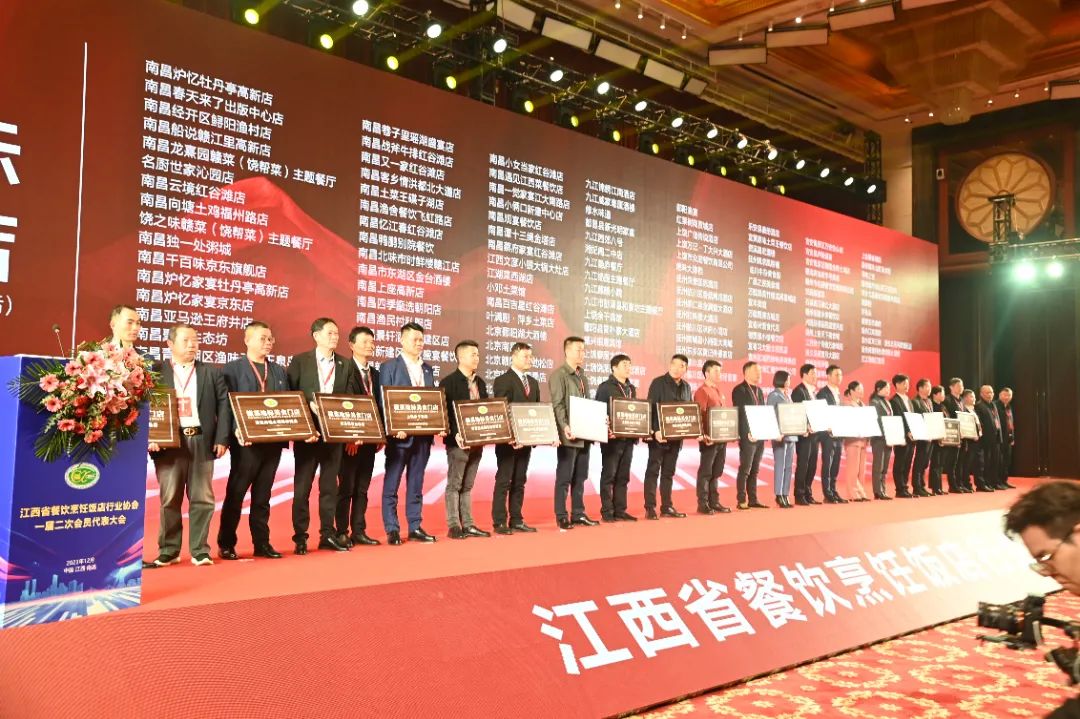 大会现场为“赣菜大师工作室”“江西省餐饮企业50强”“行业先进单位”“赣菜地标美食门店”等奖项进项颁奖。