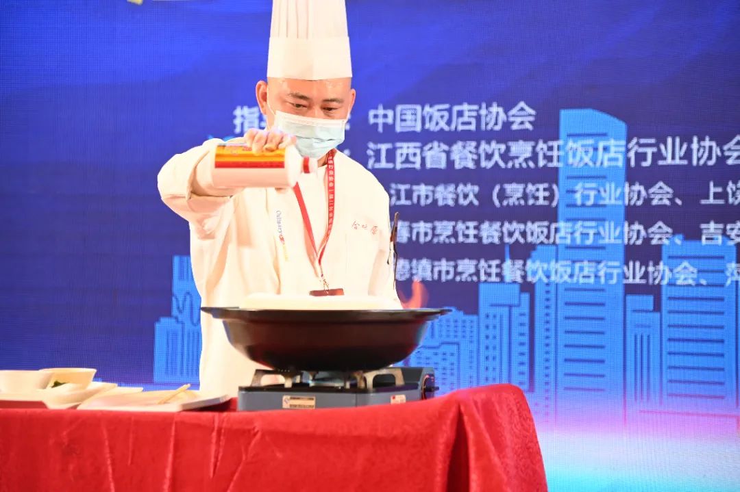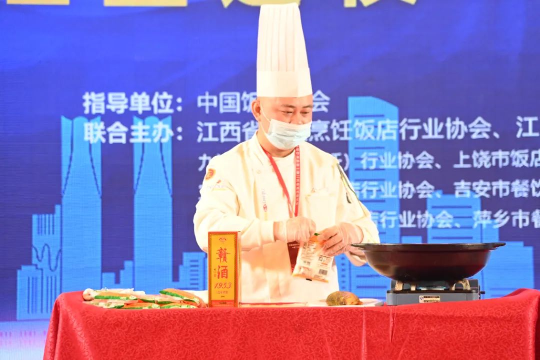 现场,高级的赣菜厨师,用醇香优雅的赣酒打造出精致美味的赣菜,一道道浓香馥郁的菜肴打造了一场饕餮盛宴 。