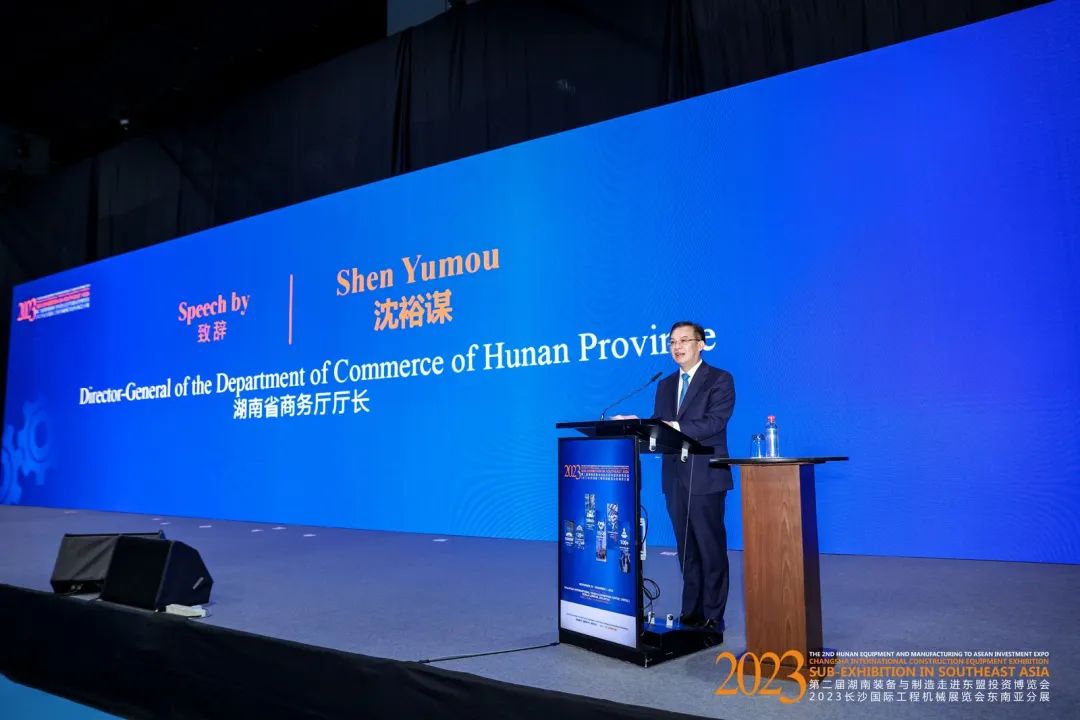 11月29日上午,以“高端化、智能化、绿色化——新一代工程机械”为主题的第二届湖南装备与制造走进东盟投资博览会暨2023长沙国际工程机械展览会东南亚分展在马来西亚吉隆坡国际贸易展览中心开幕。