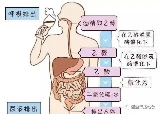 其实,白酒上头主要是因为乙醇和杂醇油。进入人体的酒精和杂醇油有10%不发生任何变化,由呼吸道、尿液和汗液直接排出体外,剩下的90%,需要经过肝脏代谢。酒量小的人,体内缺乏乙醇脱氢酶和乙醛脱氢酶,不能快速把酒精转化成水和二氧化碳,造成心律失常,脸部充血和头痛现象。