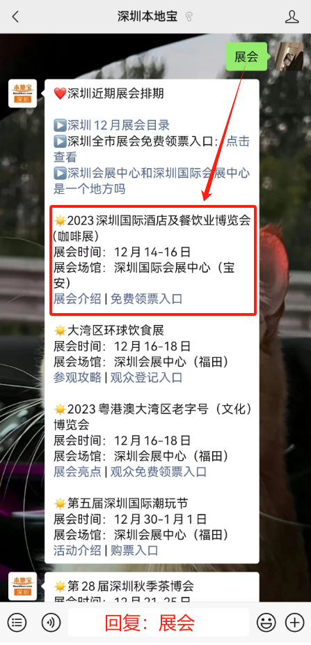 小编有话说:可以在【深圳本地宝】公众号,回复【展会】关键词,即可快速直达免费领券入口