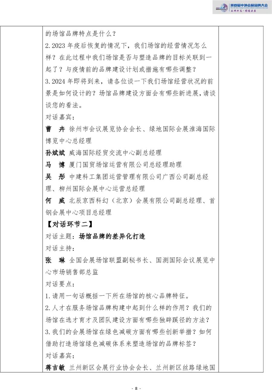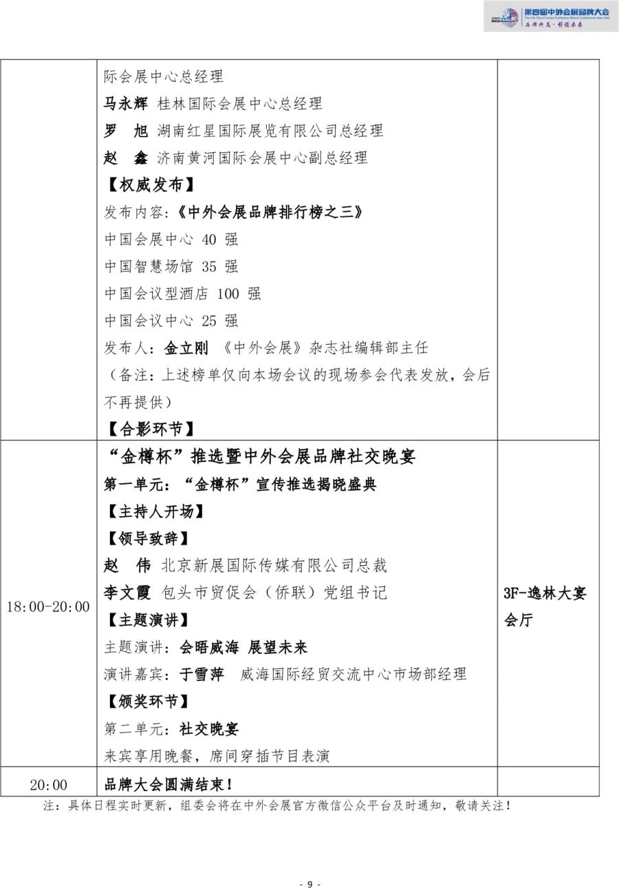 中外会展品牌大会以推动会展行业从高速度发展方式向高质量发展方式转变,加速中国从会展大国走向会展强国为使命,着力打造会展品牌,宣传会展品牌建设成果。本次品牌大会核心内容包括:“中外会展开幕全体大会”“会展品牌权威报告发布”“中外会展品牌榜单发布”“四场品牌会展主题分论坛”“‘金樽杯’推选盛典”等板块内容,汇聚业内知名企业家、研究学者共同探索品牌战略。