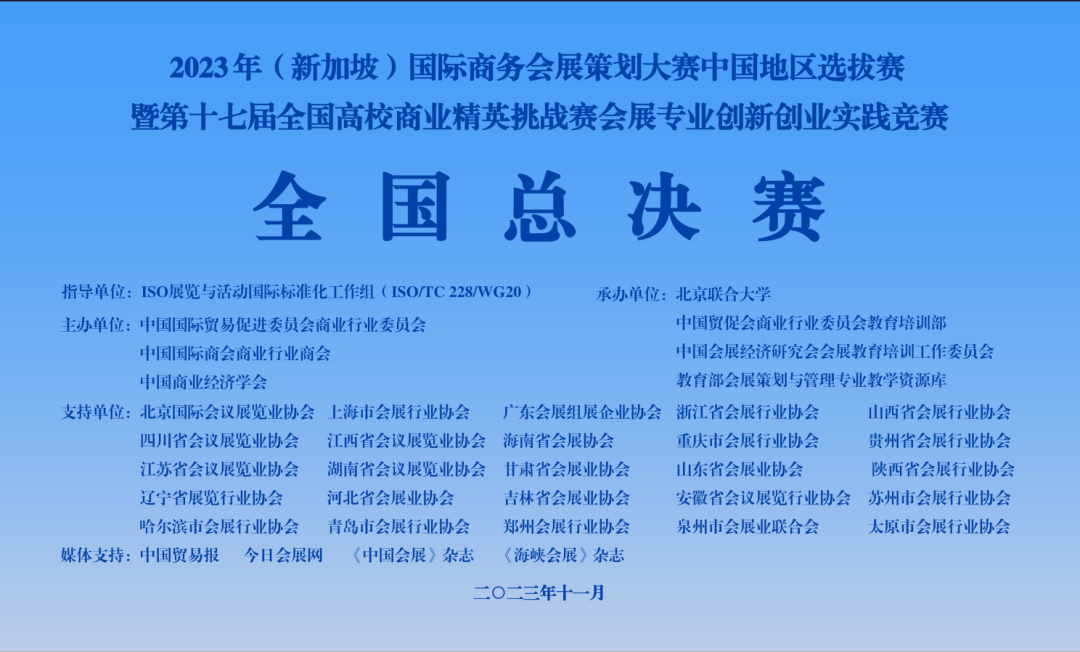 全国高校精英挑战赛是教育部认定的挑战杯项目之一,自2007年创办以来已累计成功举办十六届,是纳入高等教育学会“全国普通高校大学生竞赛排行榜”的全国大学生会展类专业竞赛。