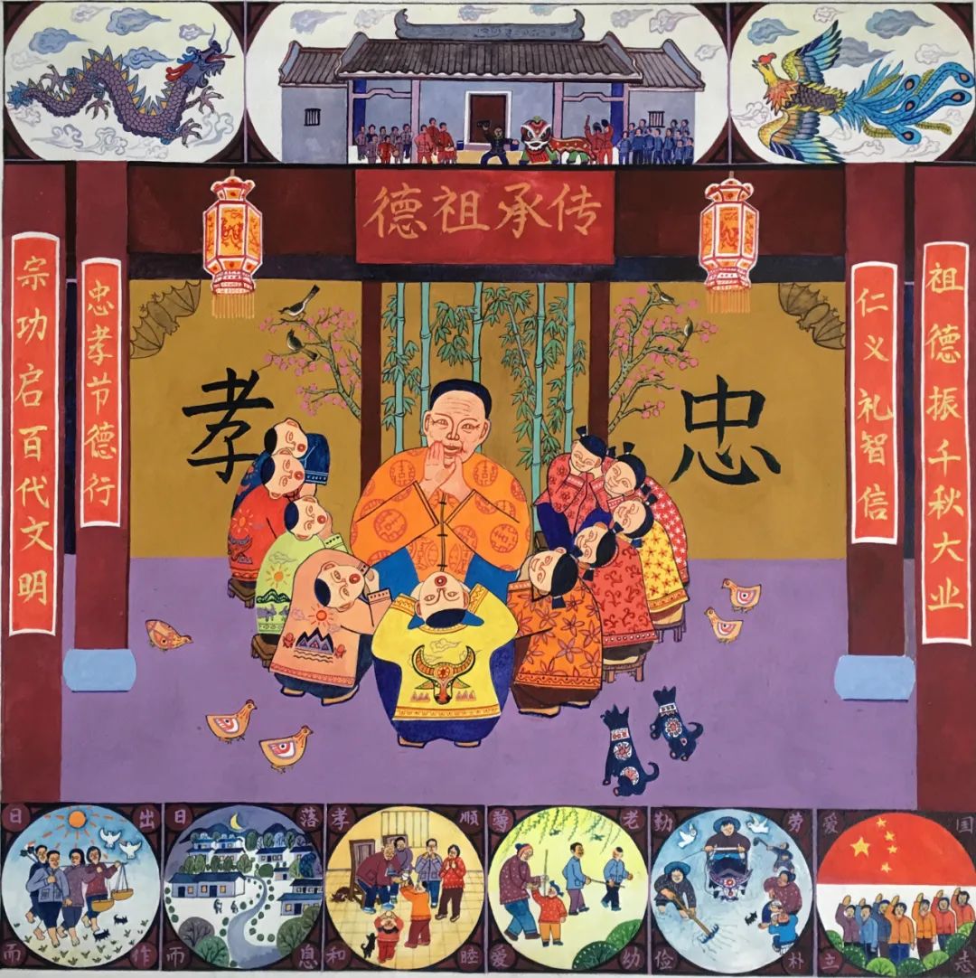 作品围绕讲好中国故事为主题,通过浓厚祠堂文化为民间宗族凝聚力,延续对祖德的传承,使祖德根深蒂固为传统美德,画面以长者讲故事的形式教育小孩子像祖先一样修身、养正,遵守自然规律,日出而作,日落而息,勤劳俭朴,尊老爱幼,立志报国,做一个忠孝之人,更好光宗耀祖,代代相传。