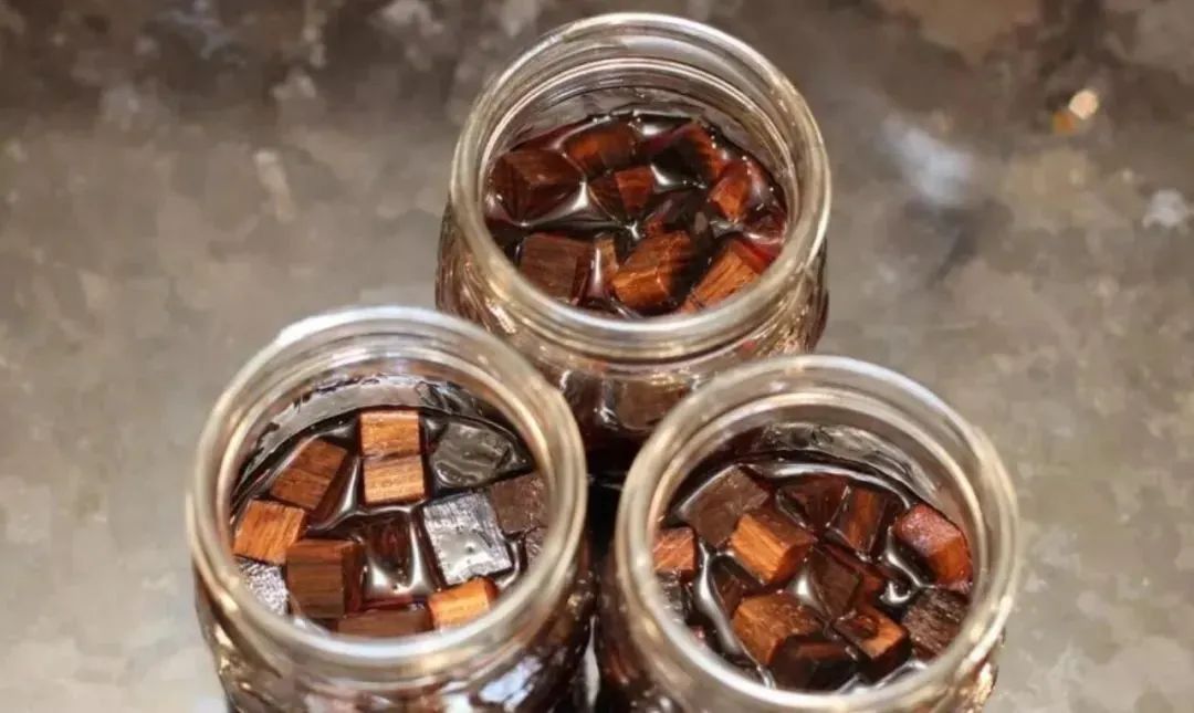 ④ 为了让红葡萄酒喝上去有点橡木味,营造一种经过橡木桶陈年的感觉,可以将橡木块或橡木条在酒里浸泡一段时间来获取橡木味。更有甚者,直接往酒里加橡木香精,这样来的更快更浓郁。