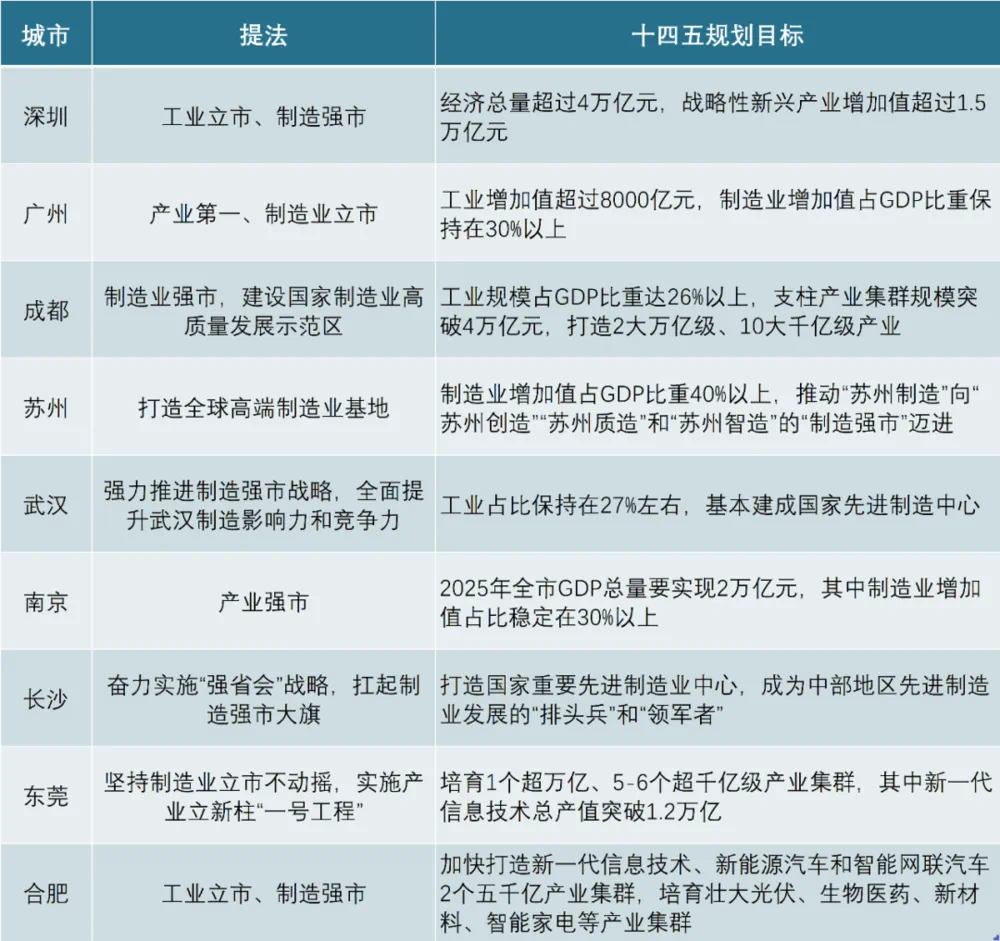 图 | 部分城市提出“产业强市”理念