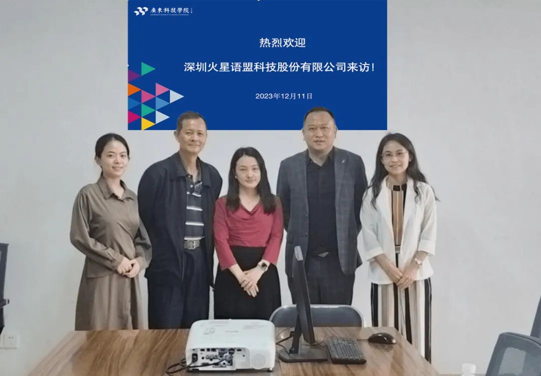 2023年12月11日下午14:40,我院在松山湖校区C2-304会议室召开校企合作洽谈会。深圳火星语盟科技股份有限公司副总裁徐徐、科研与产学研副院长贾钟琦、翻译专业带头人袁斌业、翻译专业建设负责人付云云、翻译专业骨干教师刘雯雯参加了合作洽谈会,会议由付云云老师主持。