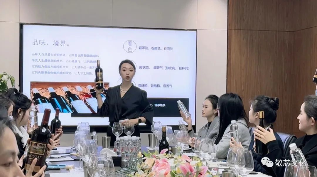 12月8日下午,畅予葡萄酒文化研究院副院长、重庆市礼仪文化研究会副会长兼秘书长刘丽媛老师;敬芯文化创始人、服务管理体系落地专家王曼华老师受邀请来到贵州茅台重庆葡萄酒品鉴中心开展了一场葡萄酒品鉴培训。