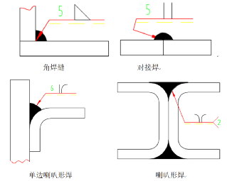角焊缝:两个零件之间焊接处成一定角度的焊缝;