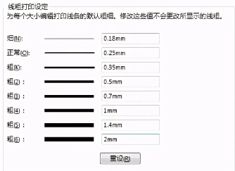 轮廓线(粗实线)与其它线(细实线)粗细分明、适当,建议粗实线宽度为0.35mm,细实线宽度为0.18mm。具体如下: