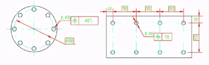 位置度与带框尺寸:定位尺寸分为两类,一类是安装一个零部件本身的安装尺寸,另一类是除安装以外的定位尺寸。这两类尺寸是有区别的,本身的安装尺寸是不能有大偏差的,用带框尺寸表示,而带框尺寸又是和位置度不可分离的。带框尺寸和位置度的标注方法如下图: