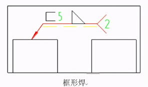 旗帜为现场焊缝符号;圆圈为圆周焊缝号;两个三角为对称角焊缝符号;Z表示交叉焊缝。具体含义详见《机械设计手册》。
