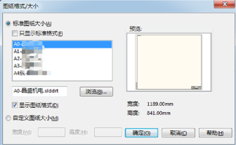 工程图模板选择好后,选择合适的图纸格式。根据国家标准规定,公司制定了5种幅面的图纸格式,包括“A0—某某公司”、“A1—某某公司”、“A2—某某公司”、“A3—某某公司”、“A4纵—某某公司”。需特别说明的是,A4图纸在使用时不允许使用横向图幅。