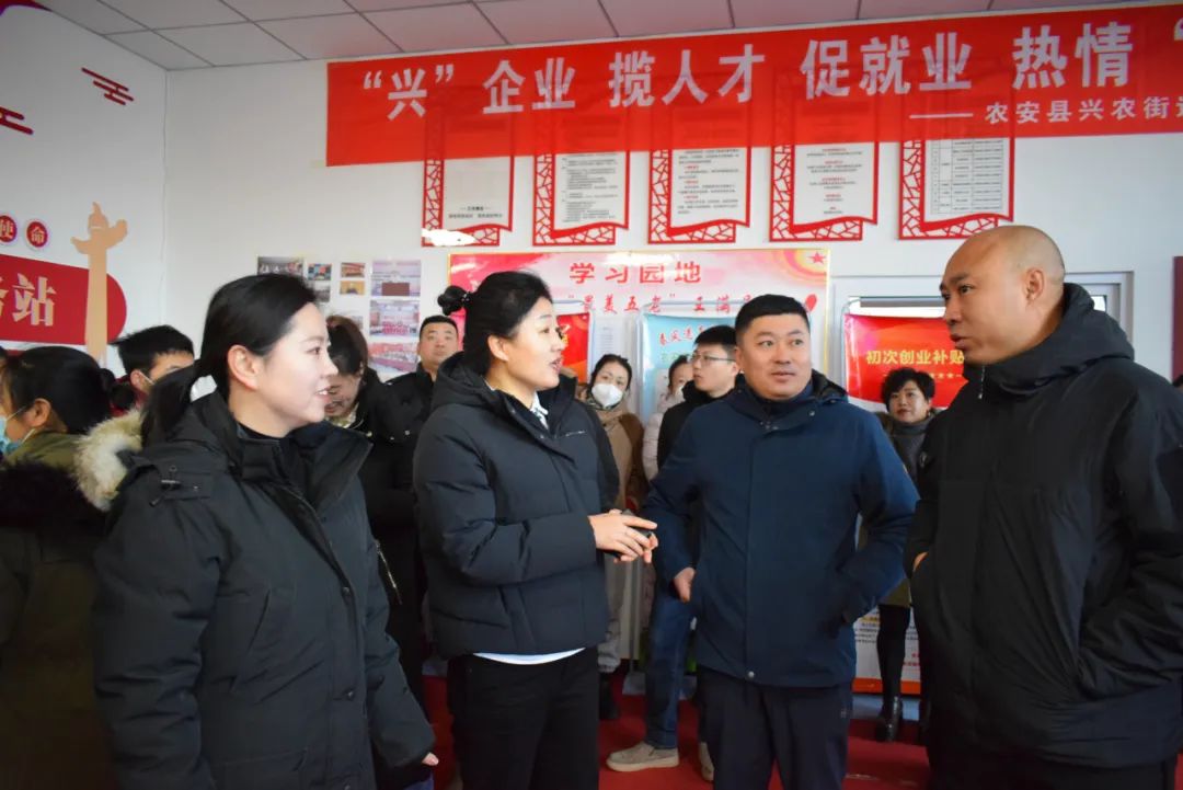 农安县人社局副局长韩春德、农安县就业服务中心主任谭春波莅临活动现场,农安县兴农街道办事处主任冯鹤、办事处副主任田雨竹参加了此次活动。