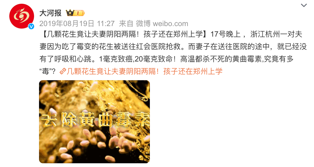 原来他们前一天吃了一些发霉的花生,自觉无关大碍,没想到一夕之间夫妻阴阳两隔。