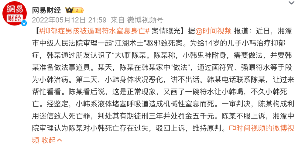 更有甚者,比如湖南那位给儿子“做法”治病的父亲。