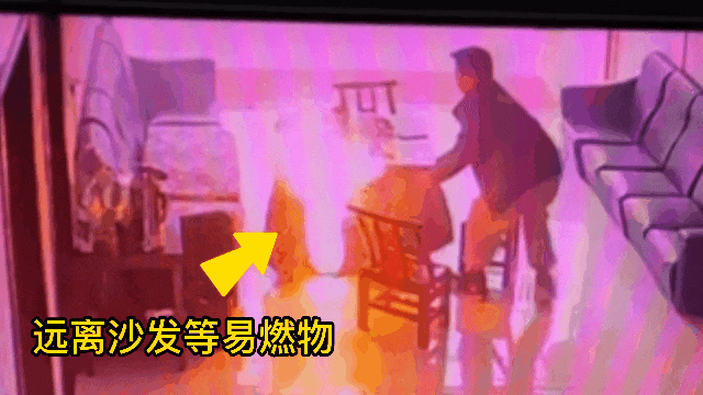 返回时,见火苗蹿上了桌布,第一时间就拖开了烤火桌,让其远离沙发、木质座椅等易燃物。
