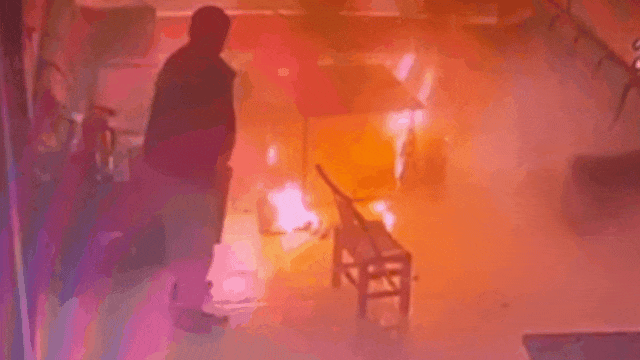 期间已经有其他员工发现火情,可他们只是站着看了几眼,又继续自己的工作。
